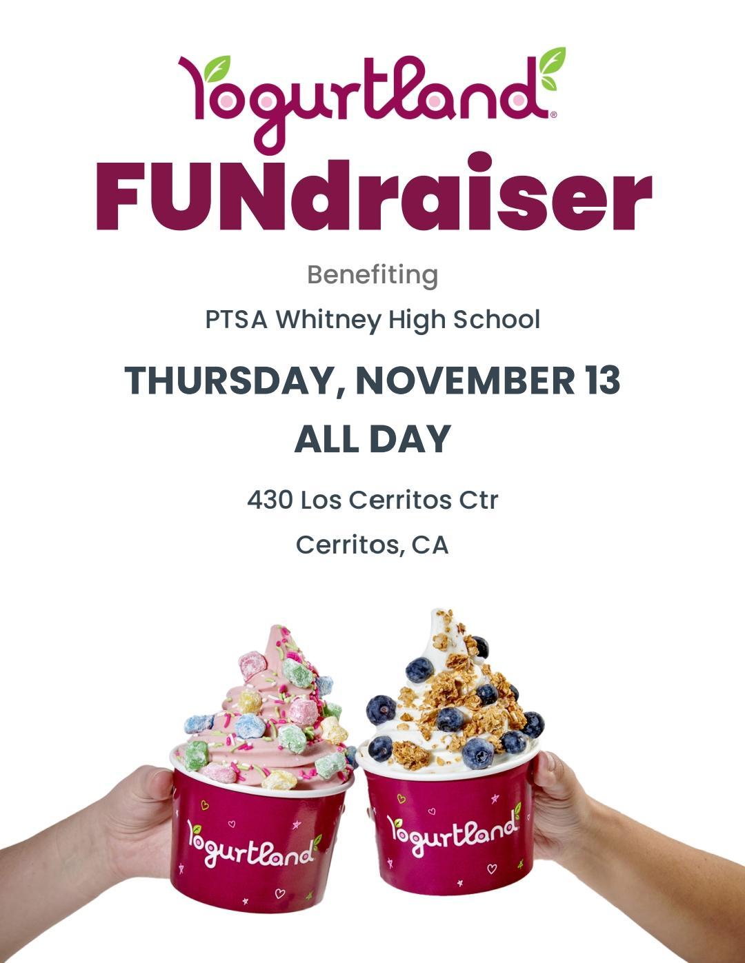 WHS PTSA fundraiser at Yogurtland on 11/13/25 from 10am - 9pm
